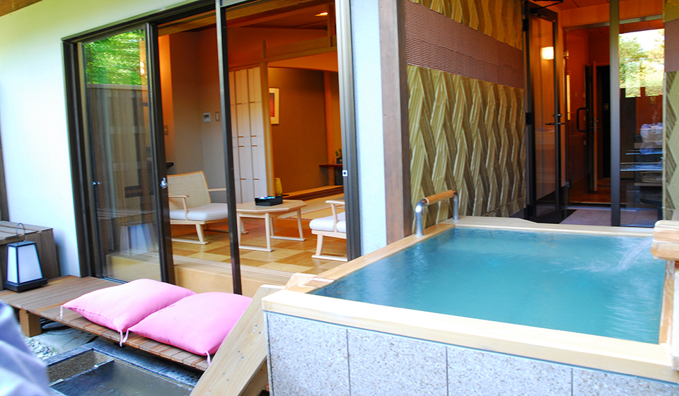 客室露天風呂とはまた違った開放感を味わえる大露天風呂