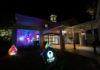 内湯を出ると、ランプと草履が用意されています。山の斜面にある石の階段を登り、中腹にある野天風呂には、モクモクや農家の作った四季折々の旬の果実や草花を浮かべてあります。この奥にも1枚岩をくり抜いた野天風呂があります。